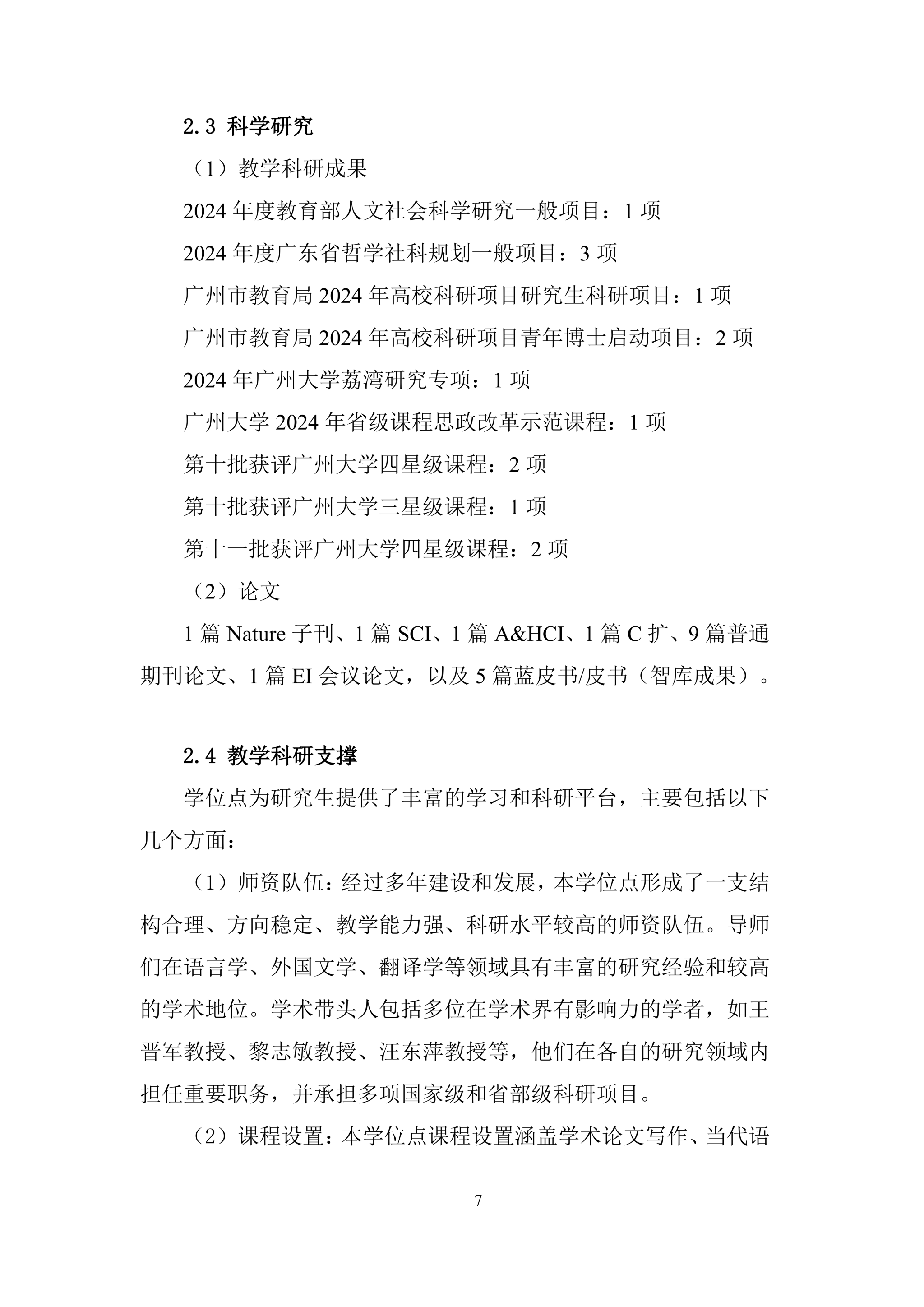 学术学位授权点建设年度报告提纲(2024)-外国语言文学