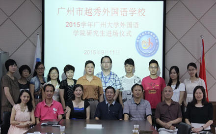院长肖坤学教授、研究生教学部主任朱亚夫副教授、带队老师苏远连博士,广州市越秀外国语学校校长李洪奇、副校长黄斌、副校长黄坚、教导处主任聂佑林、英语科长周海珊以及各位指导老师。会议由广州市越秀外国语学校英语科长周海珊主持。
