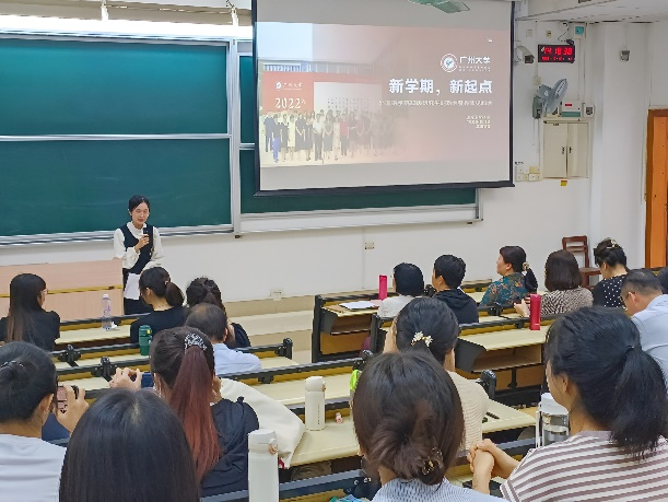 新生代表周少玲同学发表感言。她首先感谢学院领导和老师们的支持和信任,让她有机会在这个崭新的平台上继续成长。她表示,作为研究生,一定会更加珍惜每一次学习和成长的机会,虚心求教、潜心研学,不辜负学院和老师们的期待。