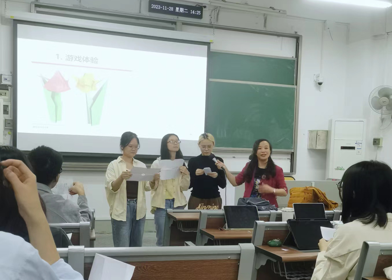 讲座开篇,陈老师采用游戏方式活跃气氛。通过师生互动,陈老师提纲挈领地指出,教学应避免单一灌输,教师应在引导学生思辨与成长的过程中发挥重要作用。同时,此番体验也让在场同学初次感受到课堂观察的重要性。