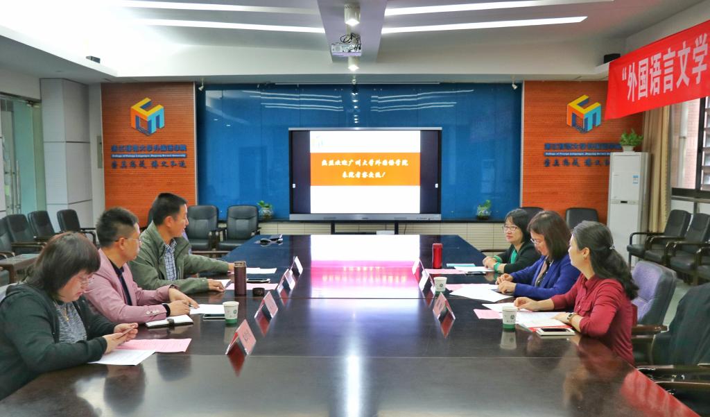 进行调研,受到了该院张生祥副院长、英语系张建鹏副主任、翻译系朱玲佳副主任和教务办颜文钦主任等人的热情接待。调研过程中,苏院长、陈姝主任和陈丽虹副主任就该学院英语专业的本科人才培养方案、课程理论和实践大纲、课程设置、学生工作及实践基地建设等方面进行了深入了解,并就开设卓越班和开展学生第三课堂的一些经验和做法向张院长等人虚心求教。