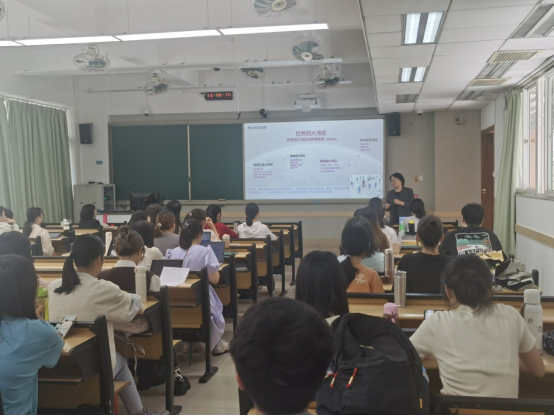 李兰博士首先从粤港澳大湾区对国际化创新型人才的需求从发,接着她从外语的重要性入手,分析为考而学的弊端,并从自身经历与经验出发,与师生共享了学习和运用外语能得到的六种能力:沟通能力、处理利用信息能力、分析数据能力、解决问题能力、掌握知识能力和电脑工具应用能力,强调了外语学习对于开阔个人眼界、研究社会变迁的重大作用。李博士讲座深入浅出,旁征博引,她例举了自己的许多科研实例与同学们分享,让同学们感到科研就在身边。在讲座最后的答疑互动环节,同学们积极提问,李博士一一给予了精彩回复。
