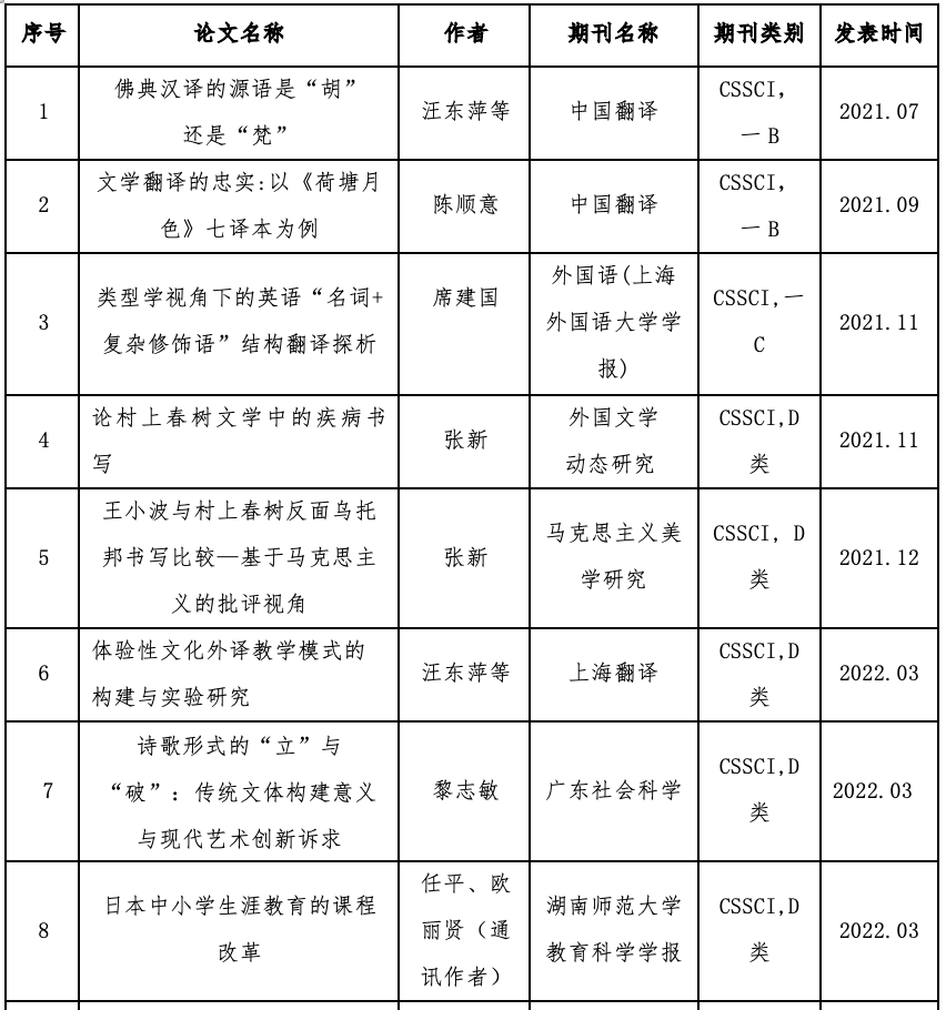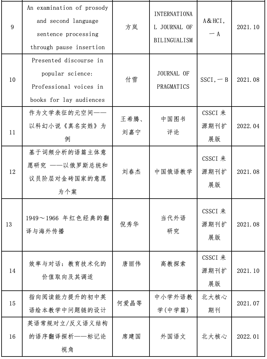 教师发表论文55篇,其中A&HCI、SCI/SSCI和CSSCI论文10篇、CSSCI(扩展版)4篇、北大核心期刊论文2篇,其他论文39篇。具体情况如下:
