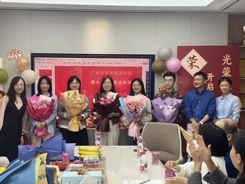 座谈会上还举行了温馨的薪火传承仪式。学院领导分别为荣休教师和新入职教师赠送了学院文创书签礼盒和鲜花,感谢前者多年来的辛勤付出,欢迎后者加入外院大家庭。最后,全体与会人员合影留念,记录下这一意义非凡的时刻。