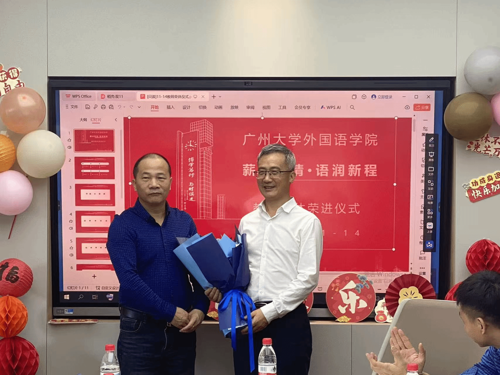 在行政东前座333会议室举行“薪火传情·语润新程”教师荣休仪式暨入职教师座谈会。学院领导班子、在职教师齐聚一堂,共同见证这一温馨而庄重的时刻。