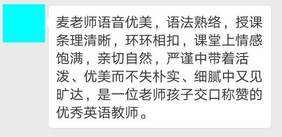 在师姐的心中,教孩子学英语不仅仅是为了应付考试,更是为了培养孩子语言沟通的能力和创新思维模式。师姐的课堂中会设置很多有趣的游戏,让孩子们在玩的过程中无意识地操练英语,同时提高他们的学习兴趣。再比如,师姐会注重培养小学五年级以上学生独立思考的能力,在没有任何的固定答案的情况下,让孩子们发挥自己的创造力和思维能力去分析问题。除此之外,师姐还会在课堂上设置英语辩论比赛,从Reading转化为对Speaking的能力培养。