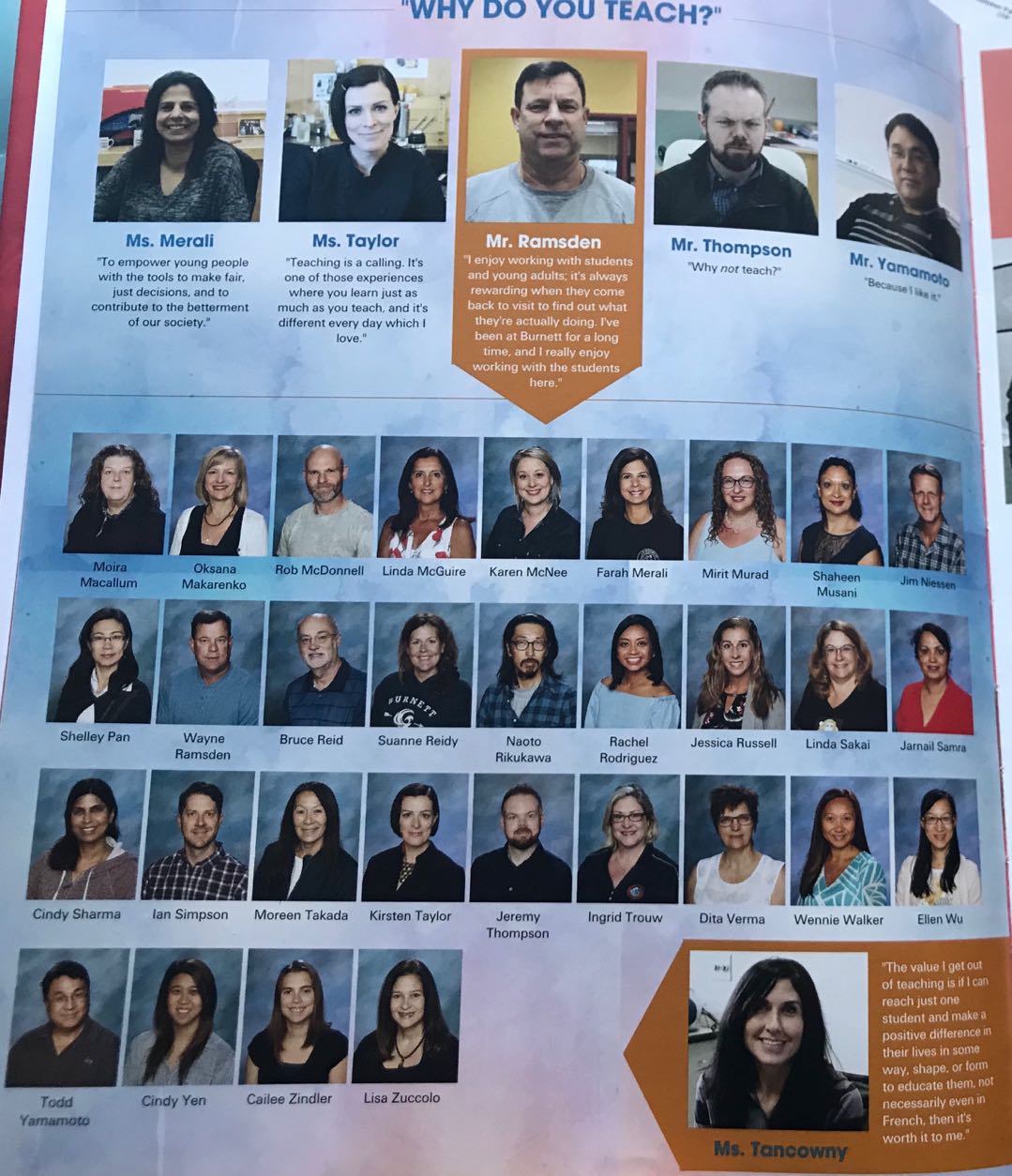 学校yearbook上的教职员工照(小图第二行左一为晓蕾师姐)