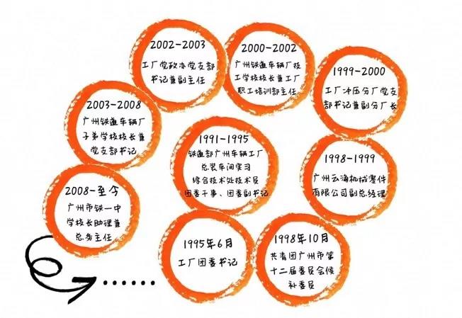 前身)外语系,现任广州市铁一中学校长助理。曾获“全国铁路优秀团干部”、“全国铁路新长征突击手”、“广州市支持少先队工作好校长”、“广州市教育系统优秀共产党员”等荣誉称号,曾连续三年被评为“广州市优秀共青团干部”和“广州市新长征突击手”。2012年受聘为中国多元智能教育协会副秘书长,曾担任九年一贯制学校校长5年,中职学校校长3年,是华南师范大学中小学优秀校长培训基地、中美校长培养实践基地、广州市中小学优秀校长培养工程基地、广东省中小学教师培训实践基地的培训导师,广州市教育专家工作室骨干成员。2017年作为广州帮扶毕节的第一批支教副校长赴毕节支教,事迹两次被《南方都市报》整版报道,支教期间发起了“广州·毕节青少年成长关爱行动”等多项公益活动。2008年被选为“奥运市民记者”赴欧洲十城市采访,事迹入选中国奥组委官方网站的《100个中国人的奥运故事》,2010年被广州亚组委志愿者部选为“传说广州亚运特使”,是广州公益阅读“家和远方”读书会创始人,是广东省青少年发展基金会“幸福厨房”公益项目的监事。