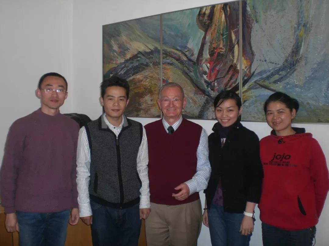 (梅杰师兄(左一)在德国慕尼黑采访预测了慕尼黑惨案的德国神探西伯尔(中))
