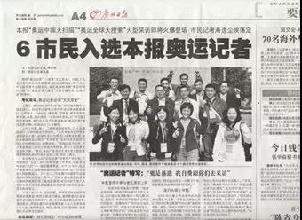 (梅杰师兄(后排左一)入选奥运市民记者的报道)