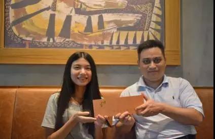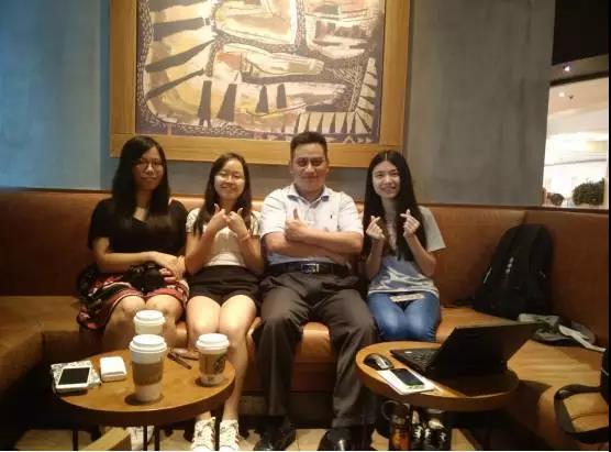 暑假在市内一咖啡店与师兄的采访合照,师兄还专业地用电脑展示了个人PPT