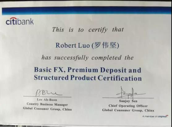 2005年开始在花旗银行工作, 完成职业的转型,一张含金量十足的证书,全英的专业考试,对文科背景的毕业生来说,难度颇高