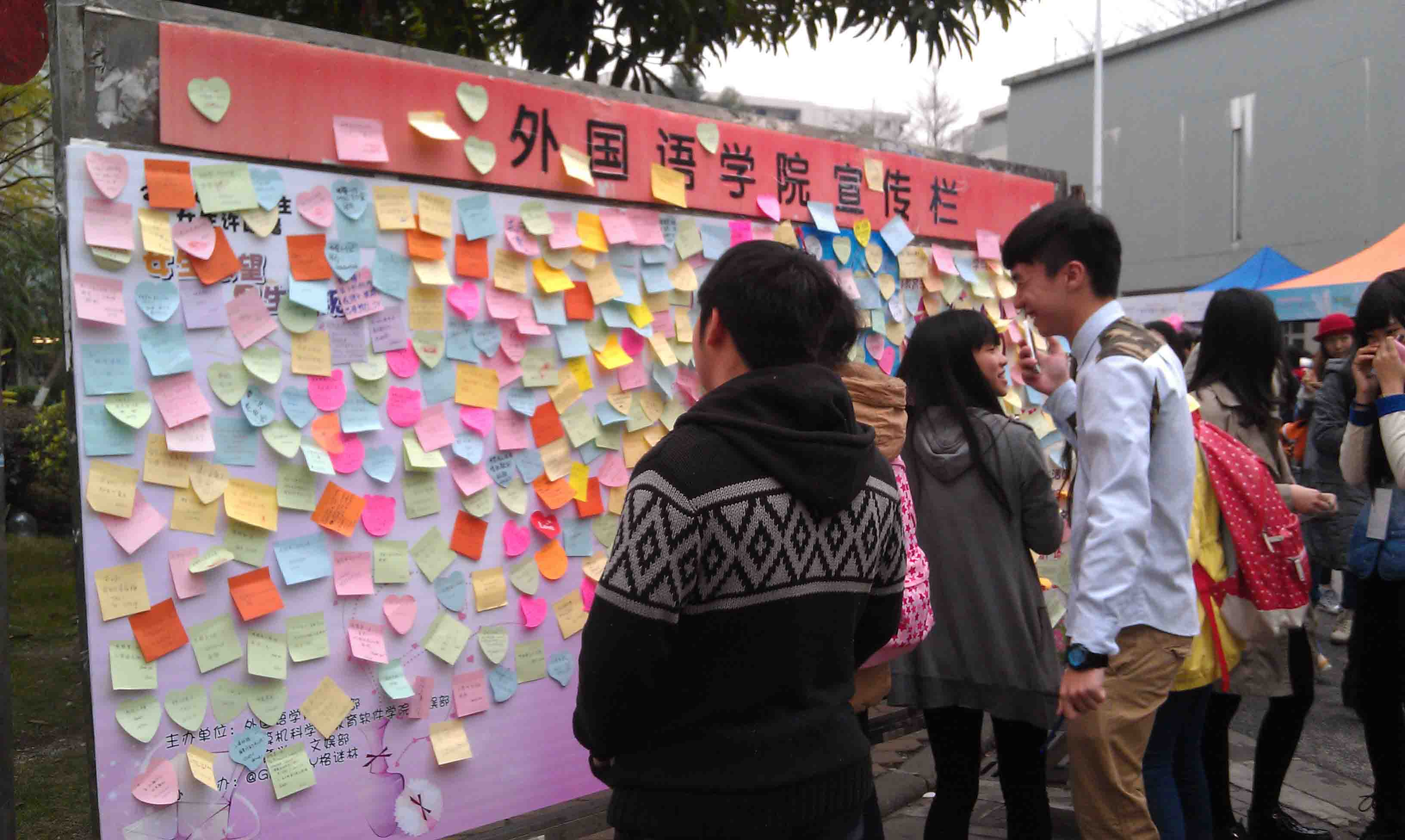 还特别为占了学院大部分人数的英语系大二女生4月份考专业四级加油鼓劲。