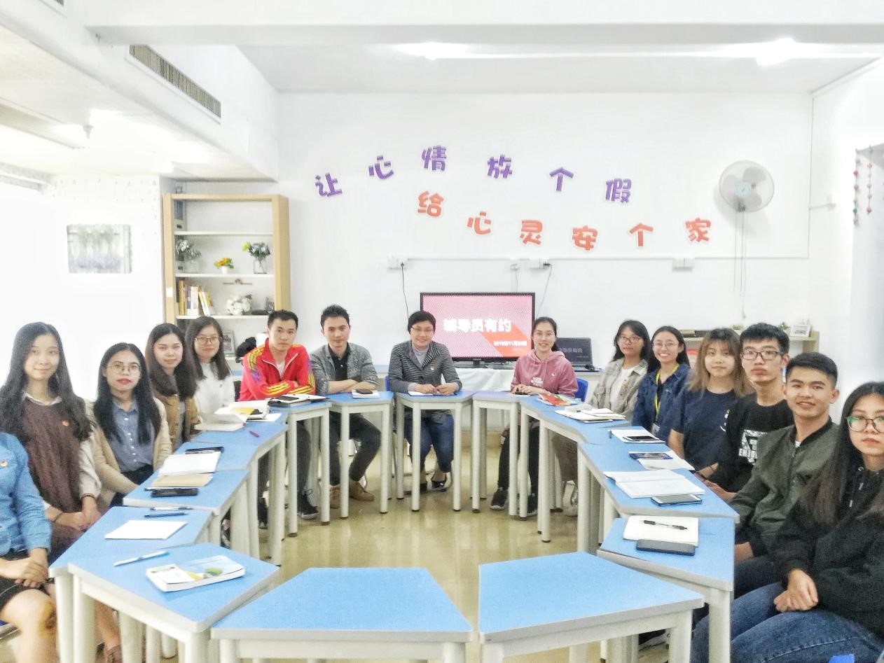 新一期的“辅导员有约”活动在B10五室一站心情驿站举行。学院党委鄢智青副书记、学工办主任任洪蔚老师、辅导员黄顺婷、陈远明老师及各兼职辅导员参加了本次活动。