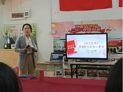 在讲座中,柯老师从书籍简介、革命先辈的家书回顾、谈红色家书内核精神和分享品读体会感受等四个部分与大家共同分享了《红色家书》。她向我们生动地阐述了史砚芬向家人表达自己将为国而死的决心、陈觉写给妻子要为国家和万 民牺牲的豪言、赵一曼受刑前留给孩子的家书,从这一封封红色家书中,传递给我们的是一种责任、一种自觉、一种境界和一种修养,是习近平总书记在庆祝中国共产党成立100周年大会上的讲话中提到的伟大建党精神——“坚持真理、坚守理想,践行初心、担当使命,不怕牺牲、英勇斗争,对党忠诚、不负人民”的精神内核。