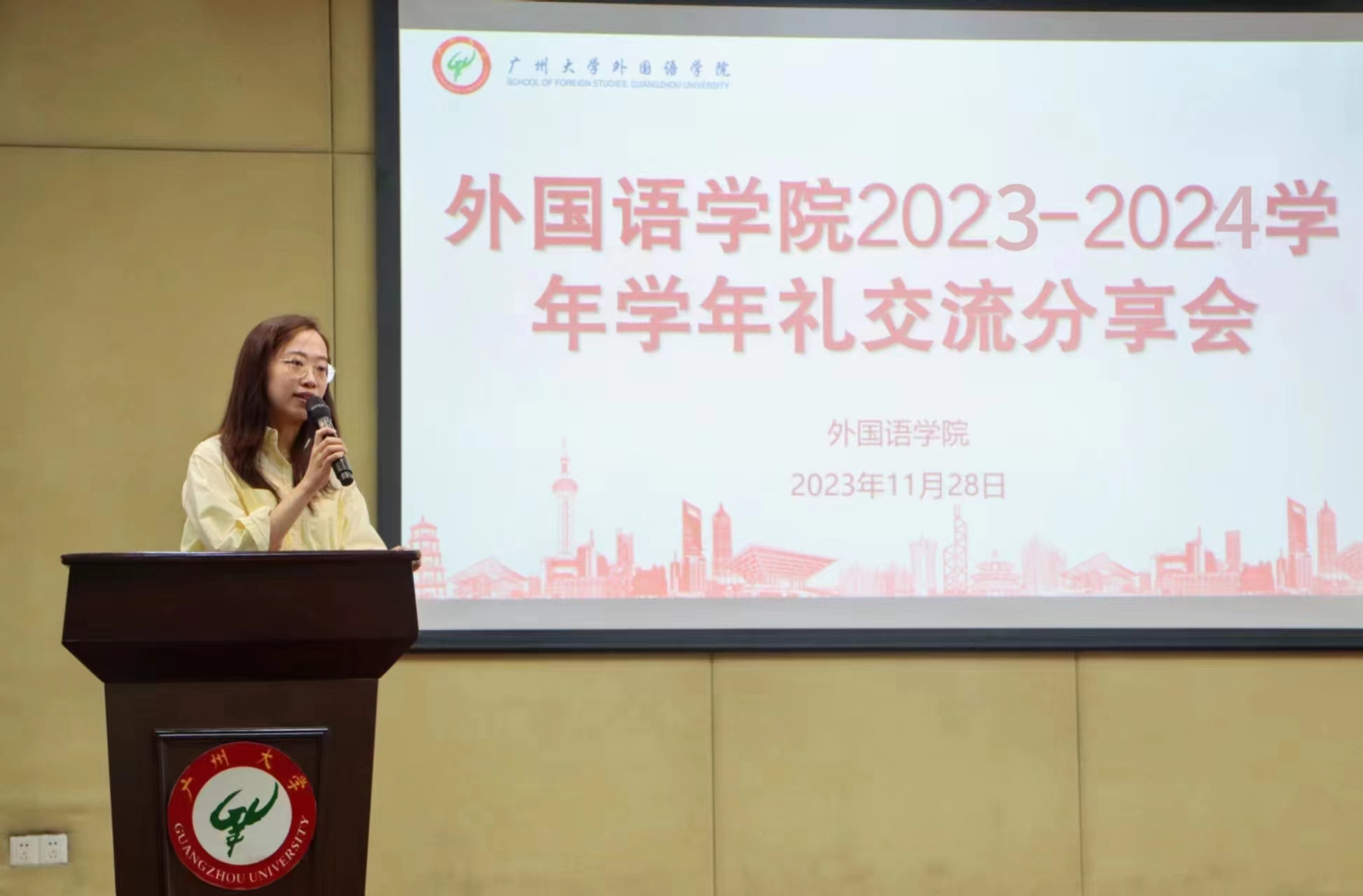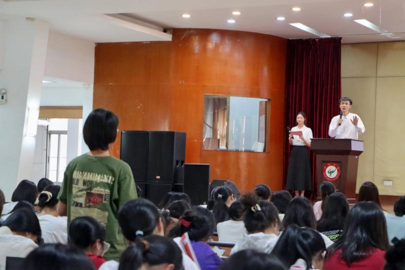 为进一步落实立德树人根本任务,实现High漫画 “德才兼备、家国情怀、视野开阔爱体育、懂艺术,能力发展性强”的人才培养目标,多平台展示外语学子风采引领学生不断追求卓越High漫画 于11月28日下午在桂花岗校区9号楼小礼堂举行学年礼分享交流会High漫画 党委副书记许多恬老师团委副书记周莹老师兼职辅导员吴雨晴老师出席会议2022-2023学年“十佳学生入围奖”张祎2023年国家奖学金获得者何镇源2022-2023学年优良学风标兵班班长陈舒婷受邀作主题分享。分享交流会由23级级委刘佳婧主持,学院2023级全体学生参加会议