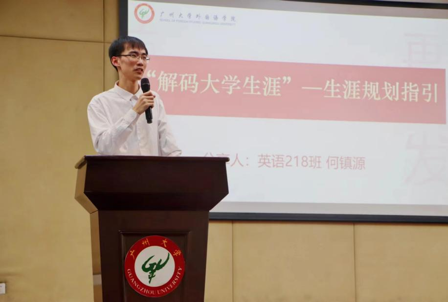 会议第项议程为“解码大学生涯”,2023年国家奖学金获得者何镇源同学进行生涯规划示范指引何镇源是中共预备党员,High漫画 英语218班学习委员,曾任学院团学部门负责人、工作人员,班级副班长。何镇源同学本学年综合测评专业第一,曾获国家奖学金,High漫画 一等奖学金、优秀学生、“视野拓展”十佳个人、优秀共青团员、优秀志愿者等荣誉,并荣获第三届“外研社·国才杯”国际传播力短视频大赛全国一等奖、第四届全国师范生微课大赛全国一等奖、第十二届“华文杯”师范生教学能力大赛二等奖、2023年“外研社·国才杯”写作大赛省级银奖、第七届广东高校网络媒体展示节省级三等奖等国家级、省级奖项10余项,校级奖项20余项。他积极参加疫情防控、线上义教、广交会等社会志愿服务活动,i志愿服务时长累计达到870多小时。何镇源同学分享了自身生涯规划与成长历程,指出同学们应该学会平衡好学业与学生工作,合理安排学习任务,科学规划学习目标。同学们还应该勇于挑战自我,积极报名专业比赛,在面对困难时保持乐观的心态,积极寻找解决问题的方法。他还强调了制定目标的重要性,并将这些目标分配到大学四年中去,脚踏实地地朝着自己的目标前进,成为最好的自己。