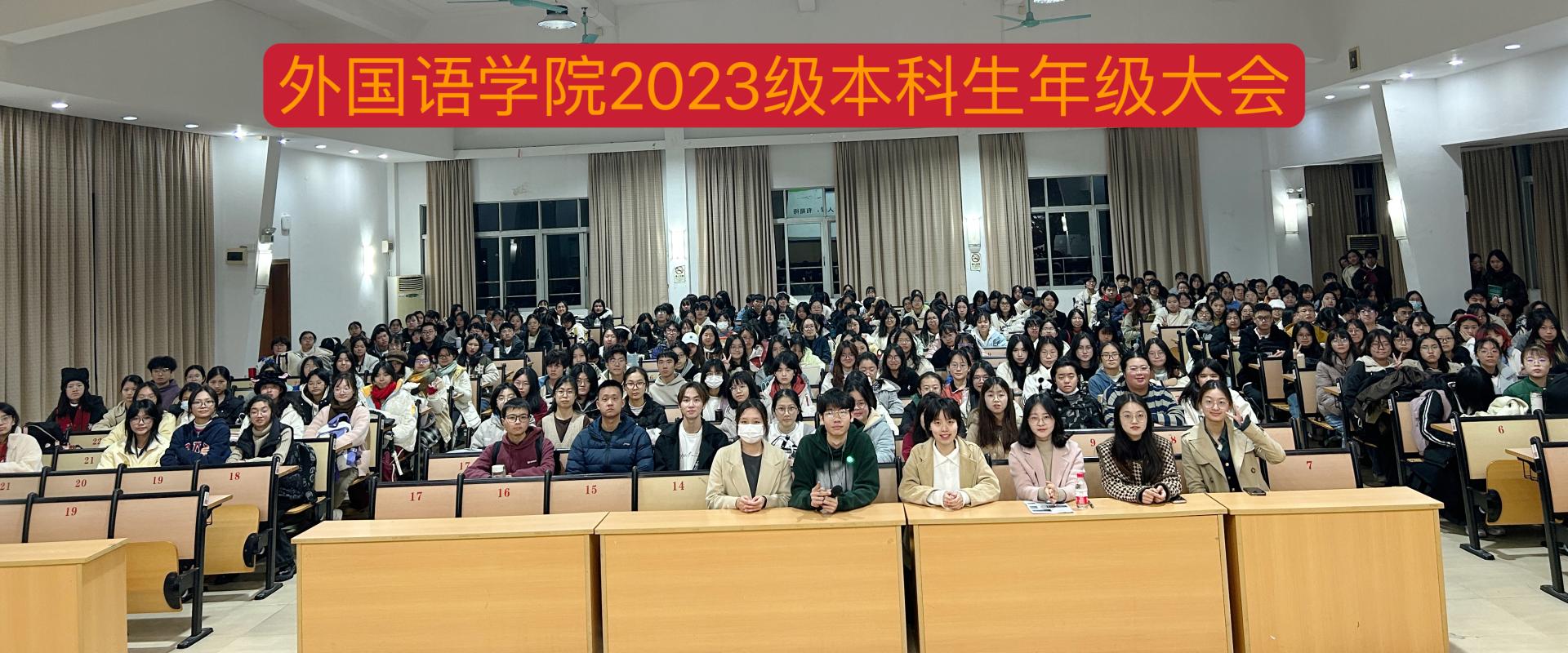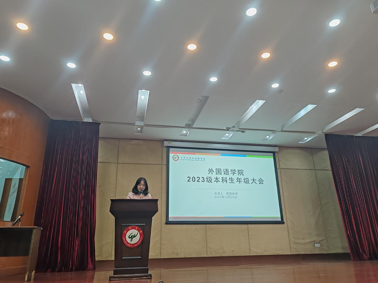 于12月25日在桂花岗小礼堂召开了2023级本科生年级大会。学院2023级辅导员周莹老师、兼职辅导员吴雨晴、郭亿琳老师和2023级全体本科生参加此次会议。