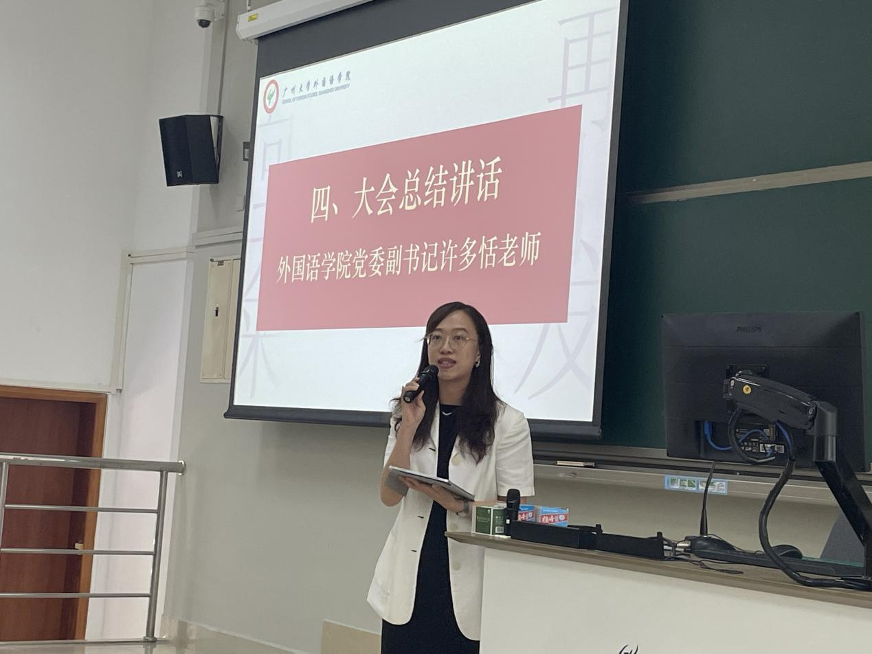 党委副书记许多恬老师代表学院师生对友谊外服的支持表示衷心的感谢,并期待未来和友谊外服探索更多校企合作的机会。她充分肯定了2025届学子积极进取的精神面貌和入学三年来的辛勤耕耘,并希望同学们深入了解就业形势,结合自身情况理性抉择,勇敢追求职业梦想。