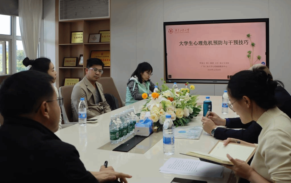举办主题为《大学生心理危机预防与干预技巧》专题讲座,特邀广东工业大学心理健康教育中心主任罗嘉文教授主讲。讲座由学院心理执行负责人廖沛玲主持,学院高年级班主任、学工团队参加了讲座。