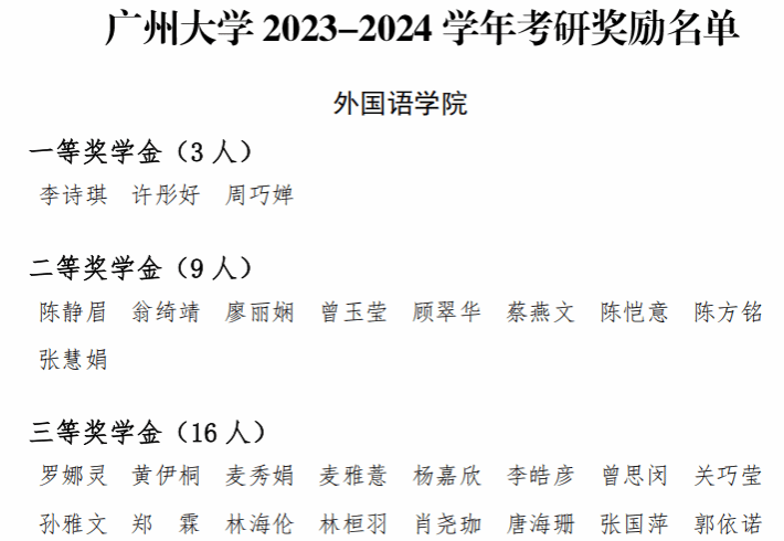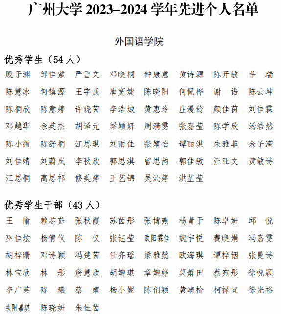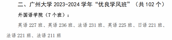 英语227班、英语236班、法语231班、英语225班、日语221班、法语221班、法语211班等7个班级,在师生凝心聚力下脱颖而出,入选学校2023-2024学年“优良学风班”。