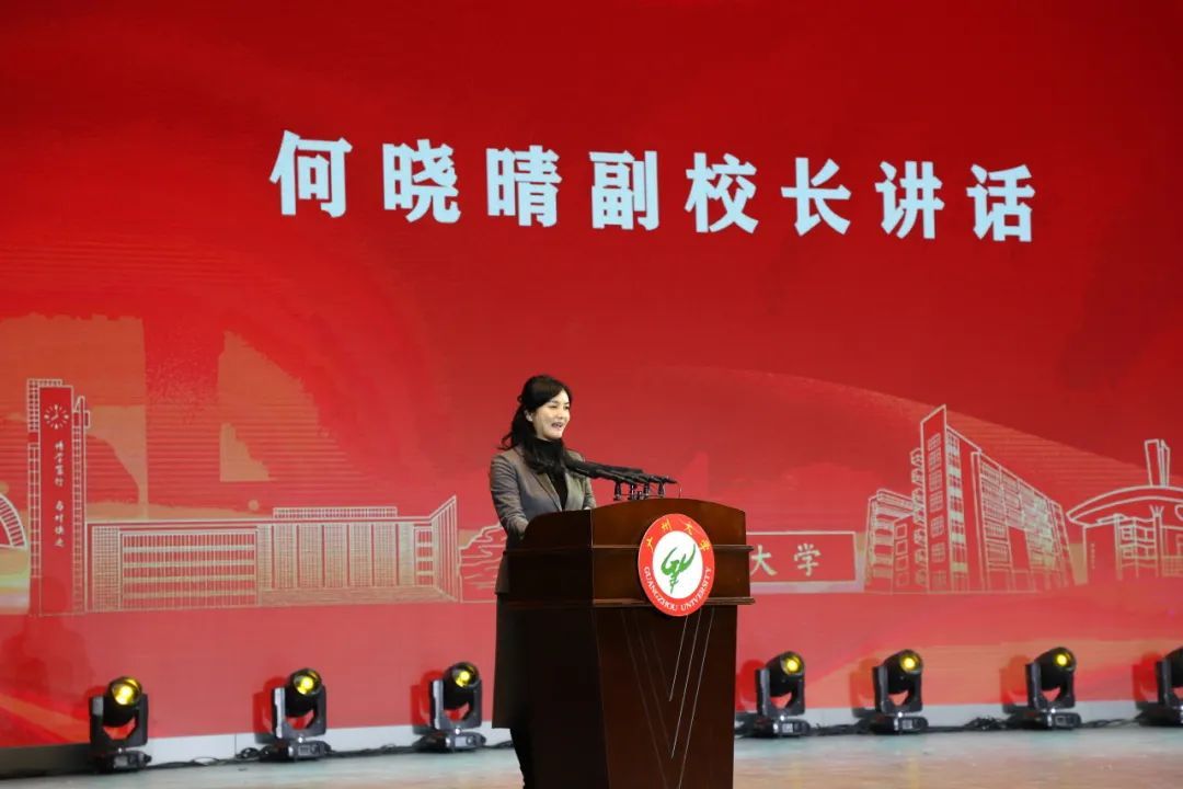 副校长何晓晴在讲话中对2023-2024学年里师生们奋力践行学校人才培养目标的出色表现表示肯定和赞赏。勉励大家以习近平新时代中国特色社会主义思想为指导,志存高远、脚踏实地、勤学苦干,用青春之力量,书写青春之辉煌。寄望广大青年要心怀家国,挺膺担当,将个人的的成长与国家前途命运紧密结合起来,立大志、明大德、成大才、担大任,做胸怀天下的广大人;要厚积薄发,脚踏实地,积极主动参与到学校为大家提供的优质平台中,锤炼本领,不断提升综合素质和竞争力,做知行合一的广大人;要仰望星空,放眼世界,以开放、合作、共赢精神,促进中国梦和世界各国人民的梦相通相融,做有全球视野的广大人。