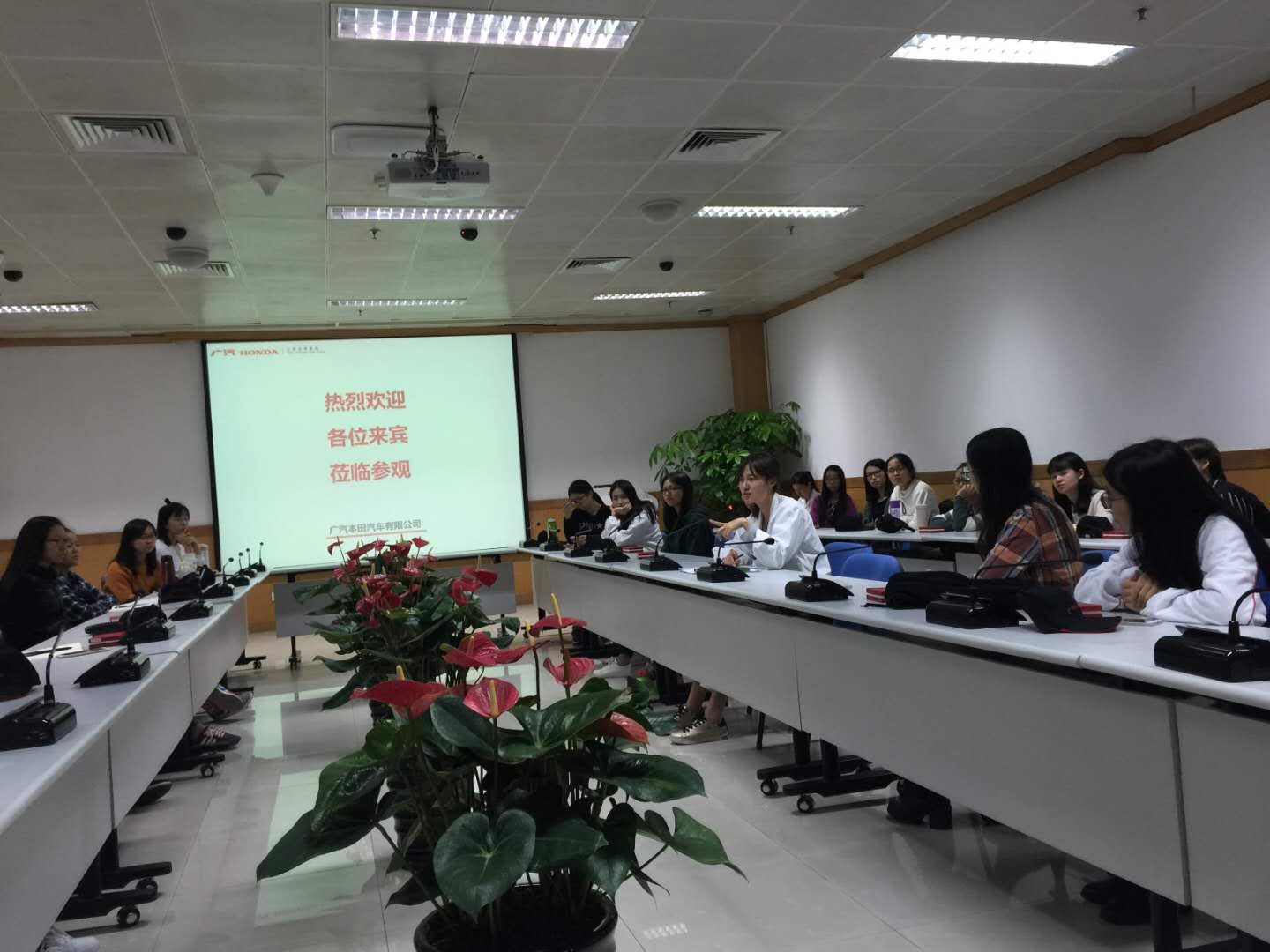 讲解人员为学生介绍了广汽本田公司一些基本情况,包括公司的品牌,奋斗理念等。紧接着还播放了宣传视频,让参观小组成员大概了解了广汽本田。