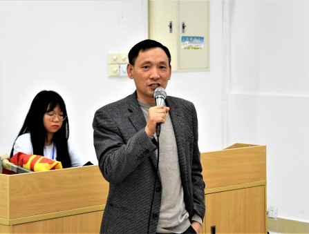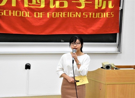 此次师范技能比赛针对大三师范班全体同学,包括说课比赛和知识竞赛。说课比赛通过各个班级初赛选出12名同学作为代表参加学院决赛。现场比赛模仿广东省师范生教学技能大赛,即要求所有选手在一个小时的有限时间里完成一个完整的课例设计,然后进行五分钟的说课。比赛伊始,肖坤学院长在发言中鼓励同学们要打好教学技能的基础,随后紧张热烈的比赛拉开帷幕。十二位选手面对挑战毫不胆怯,清晰、自然地向在场的评委和师生们介绍自己的教学设计,顺利自信地完成说课任务。点评环节中,针对同学们的表现,来自象圣中学的易翠红主任和陈嘉庚中学的张妮妮老师都对同学们的表现进行了专业的点评,使选手和在场的同学们深受启发。此次说课比赛中,选手们的表现都得到了评委的一致认可,其中来自152班的丁嘉欣同学脱颖而出获得说课比赛一等奖。