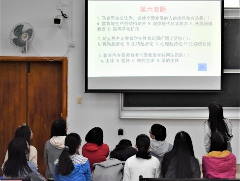 比赛的第二个环节是知识竞赛,由每个班级推选四名同学参赛。考核内容包括教师招考的相关内容如教育学、文学、历史等综合知识。最终决出赛果,一等奖由153班王敏华同学获得。此次知识竞赛,也使在场的同学们意识到理论知识对于教师综合素质的重要性。