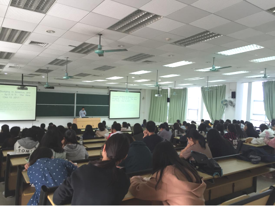 讲座上,副院长苏远连教授作为主持人首先向大家介绍了“名师大讲堂”和黎志敏教授的基本情况。接着,黎教授以《What makes a perfect English learner in China》为题,向大家介绍如何真正学好英语。黎教授介绍了英语学习的五个阶段,指出中式英语的形成原因。他认为,学习语言就是把最合适的词放在最合适的位置,学习英语应该多读书,勤查字典,慢慢积累,培养对英语的兴趣。他也指出英语教育包括语言教育(linguistic)和文化教育(culture),应平衡两者关系,以解决中国学生与外国人交流时的文化理解偏差问题,并介绍了锻炼英语思维能力的途径。