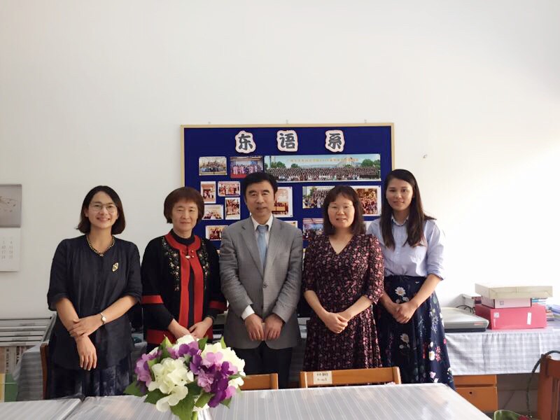 副院长苏远连、东语系主任魏育芳、东西语党支部书记李莹莹、宋晓真副教授在东语系办公室热情接待了马跃校长。