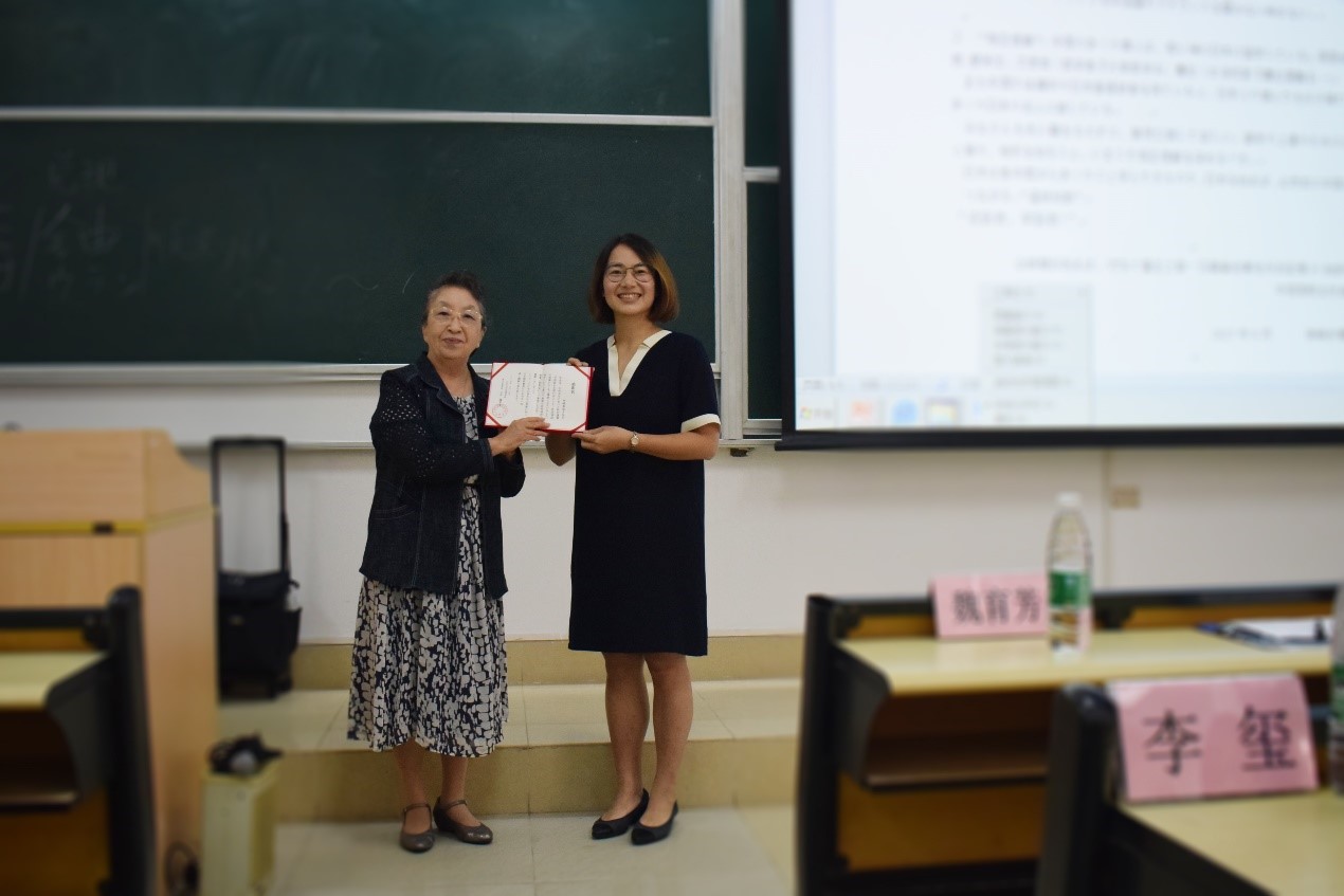 日语系主任魏育芳老师向神崎多実子老师赠送感谢信