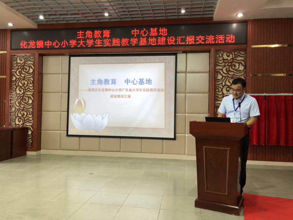 苏远连副院长一行前往番禺区化龙镇中心小学参加了我校大学生实践教学基地建设汇报交流活动。出席此次活动的有番禺区教育局伍清文副局长,化龙片区教育指导中心曾湛强主任,化龙镇中小学校高志荣校长以及其他校领导及部分师生。