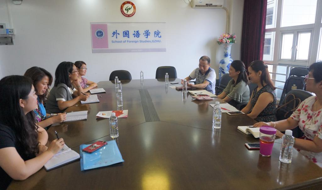 李暖均书记主持, 英语系主任陈姝、英语系商务英语教研室主任李春景、英语系英语语言文学教研室主任张黎琴参加了此次调研座谈会。