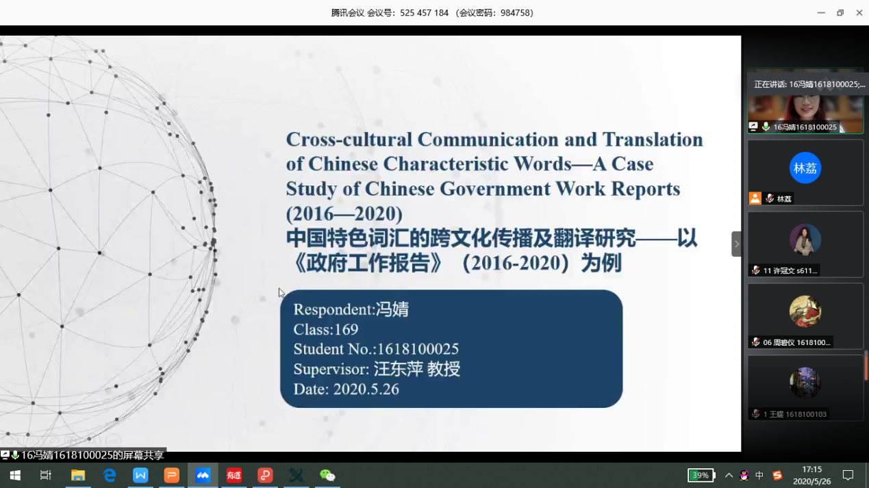 本次网络答辩是应对新冠肺炎疫情的一次全新的尝试。在各方努力和精心准备下,答辩过程平稳顺畅,组织得力有序,本次答辩圆满结束。