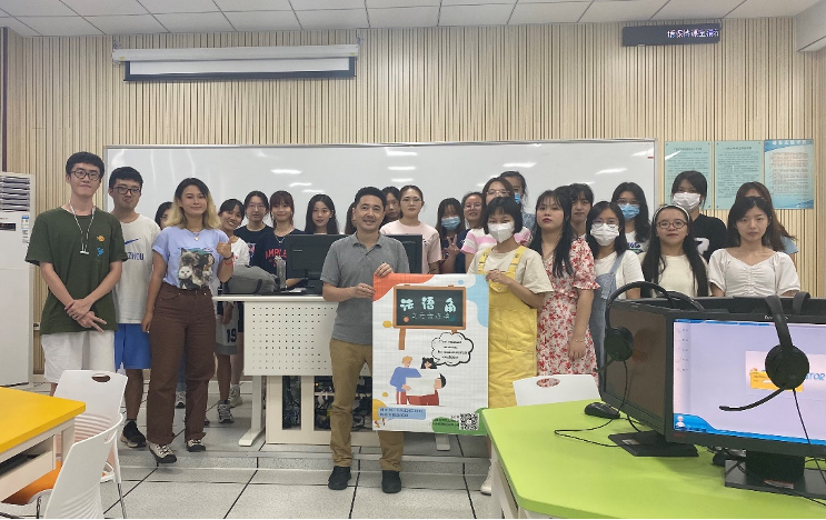 西语系法语专业于大学城校区文俊西403B顺利举办本学期第一次法语角活动。本次活动内容为法语元音的连读,外教Frédéric通过组织同学们组队比赛的方式,提高同学们对法语元音连读的熟悉度。首先,Frédéric老师带着同学们练习每一个法语句子。之后,同学们进行分组,练习比赛句子并进行录音。最后老师对同学的录音进行打分。
