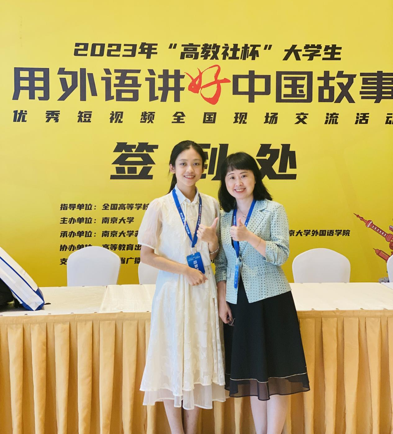 (我校选手张祎和指导老师翁素贤在全国交流活动现场)