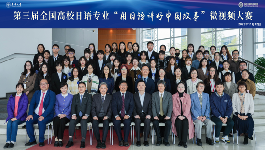 为深入学习宣传贯彻党的二十大精神,落实“增强中华文明传播力影响力”要求,纪念中日邦交正常化50周年,增强大学生文化自信,2023年11月12日,第三届全国高校日语专业“用日语讲好中国故事”微视频大赛在上海成功举办。本次大赛由教育部高等学校外国语言文学类专业教学指导委员会日语分会指导,中国日语教学研究会、中国日语教学研究会上海分会和东华大学联合举办,上海电视台外语频道《中日新视界》栏目和华东理工大学出版社协办。