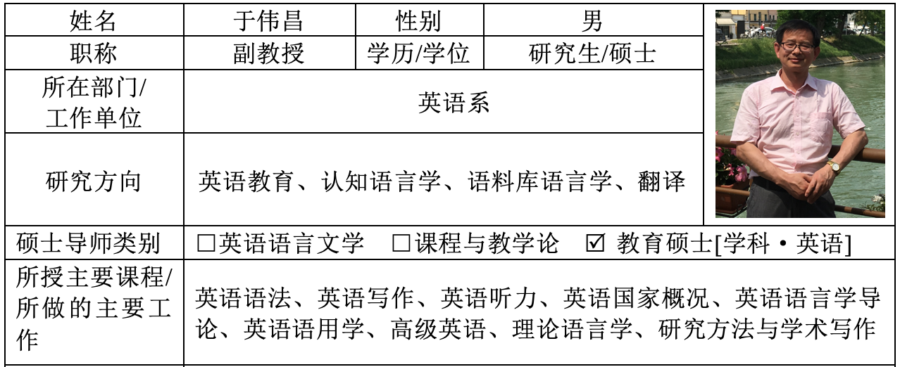 【校内导师】于伟昌