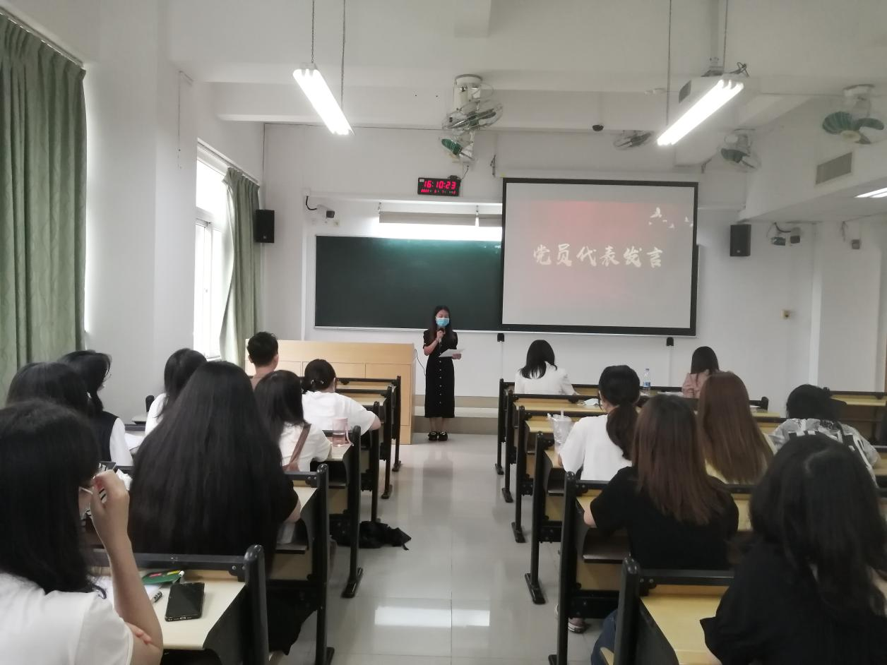党委书记李暖均、党委副书记许多恬、学工办主任任洪蔚老师、18级辅导员陈远明老师及全体毕业生党员参与活动,会议由学生第一党支部书记徐慧老师主持。
