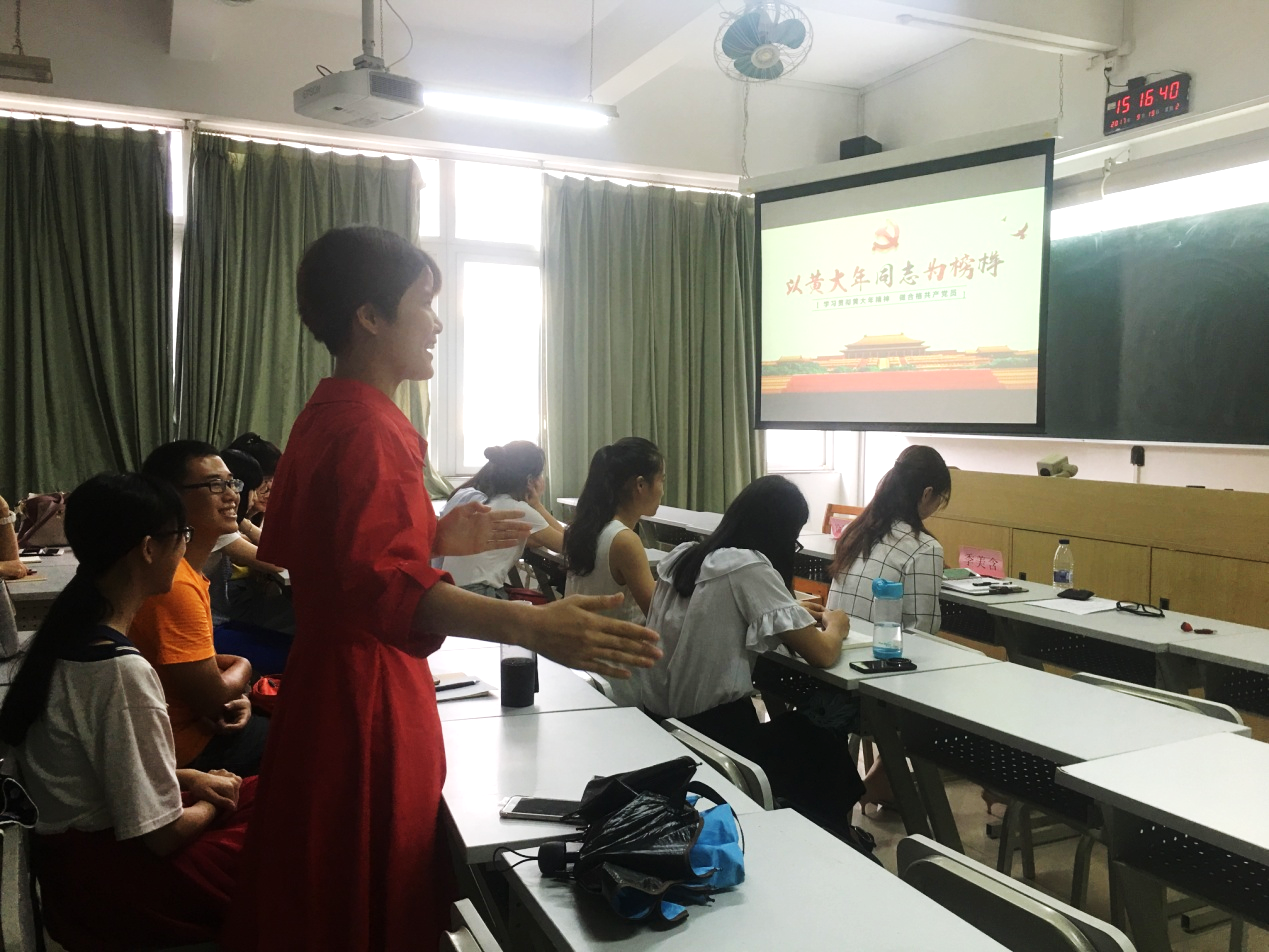 研究生党支部 “学习黄大年同志先进事迹”组织生活会在文新楼418举行。学院副院长徐歆玉、支部书记季美含和各年级研究生党员等20余人出席了会议。会议由支部副书记刘洁主持。