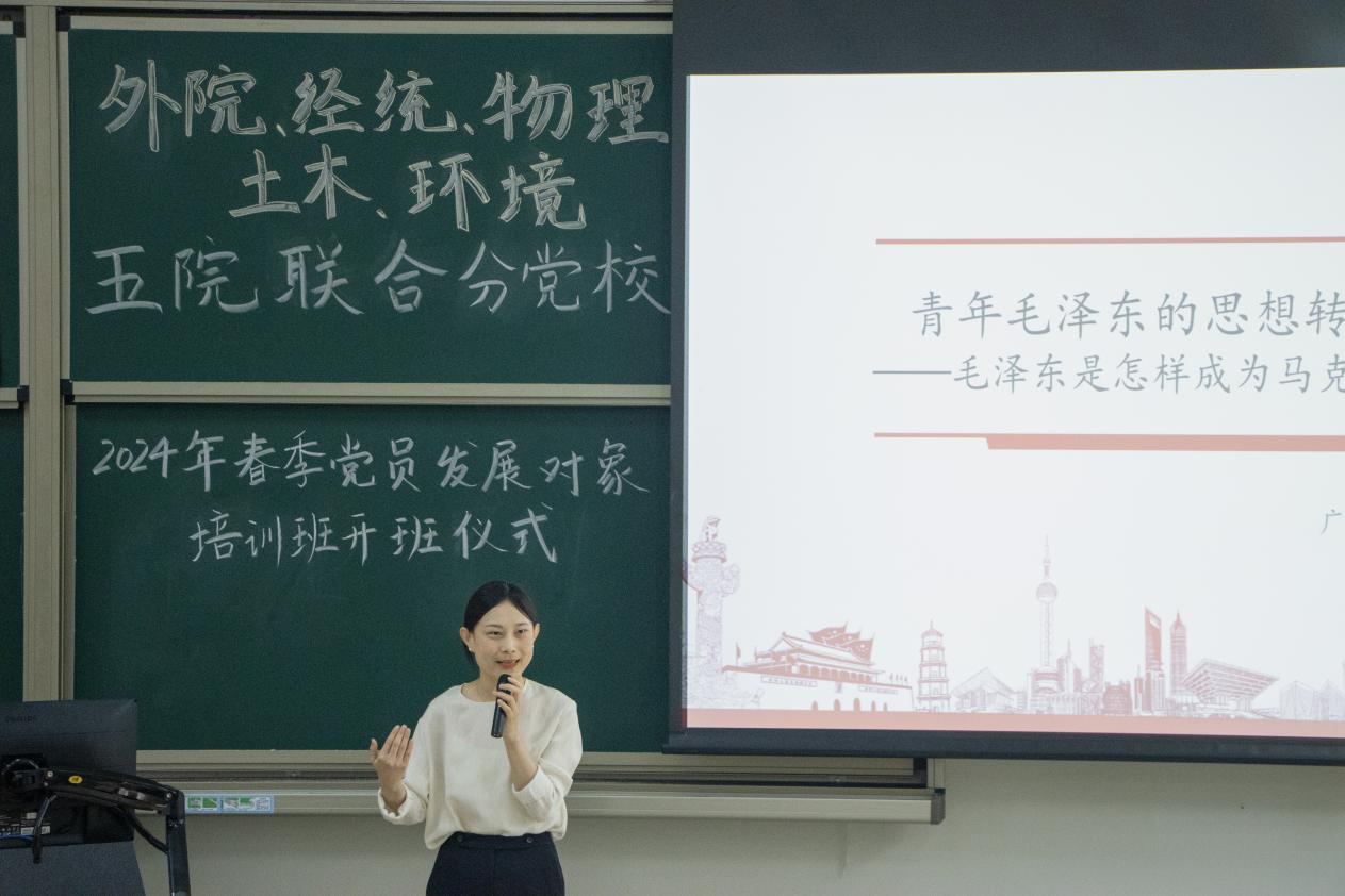 为深入学习贯彻习近平新时代中国特色社会主义思想,做好党员发展对象入党前教育,进一步增强党性修养、强化入党意识、端正入党动机,4月2日下午,外院、经统、物理、土木、环境五院联合分党校2024年春季发展对象培训班于文新213开班。本次党员发展对象培训班由High漫画