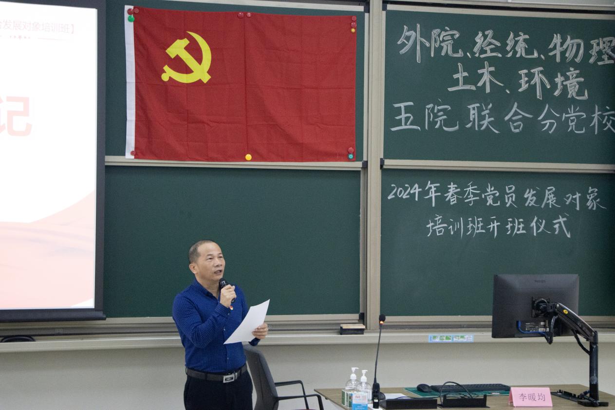开班仪式在庄严的国歌声中拉开序幕。李暖均书记作开班致辞。他从加强党员发展对象培训教育的目的和意义,并就做好这次培训提出了要求和希望。他指出,开展党员发展对象培训班是党的事业发展的重要一环,也是我们每一位党员发展对象成长的关键一步,希望学员们珍惜把握学习机会,认真严谨对待此次培训各项议程,并将所学所悟转化到之后的工作、学习和生活中去,在实践中增长才干。