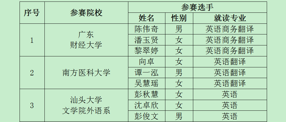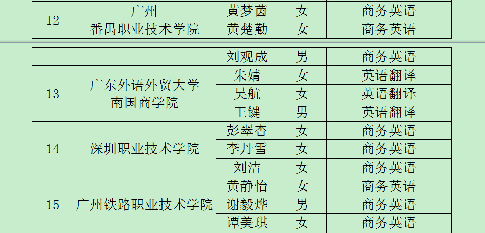 2013年“蓝鸽杯”英语口译大赛决赛名单