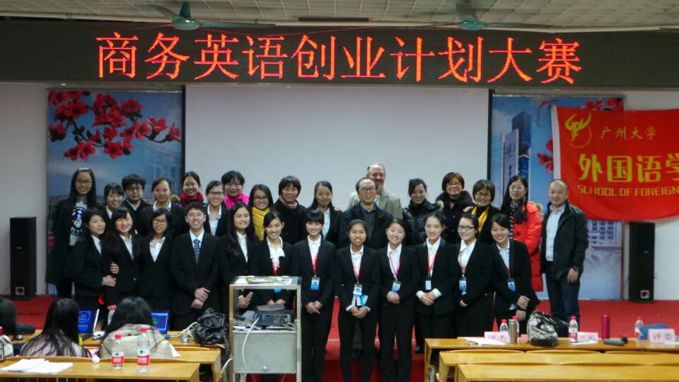 英语系商务英语教研室承办的商务英语创业计划大赛在图书馆讲学厅隆重举行,覃鸿怀副院长、陈荷荣老师、教研室主任袁晓燕、程跃珍副教授、丁怡副教授以及外教Jim Russell等嘉宾莅临出席并担任评委。国际商务英语系其他老师及学院众多学生也积极到场观看比赛。