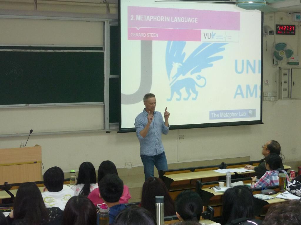 师生精心设计了一连五天的学术活动,内容涵盖:从模型到方法(From Model to Method)、隐喻模型(A Model for Metaphor)、语言中的隐喻(Metaphor in Language)、思维中的隐喻(Metaphor in Thought)、交际中的隐喻(Metaphor in Communication)、从方法到研究(From Method to Research),其中还包括两场分别以MIPVU团队创建的五步隐喻分析法应用为主题的研讨会。本次学术活动主要向广大师生系统介绍基于话语的隐喻研究,从隐喻理论研究的发展脉络到隐喻模型再到隐喻研究方法,分别从语言、思维和交际三个方面对话语中的隐喻进行分析,并介绍了Steen教授及其研究团队所共同研发的MIPVU 隐喻判断五步分析法。整个系列内容由浅入深,不同模块之间环环相扣,内容丰富详实。