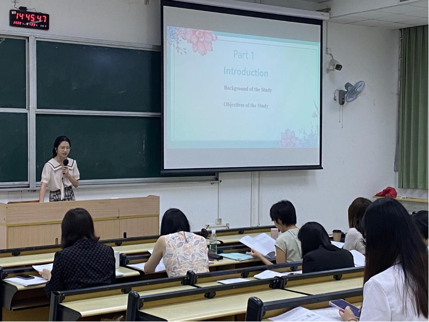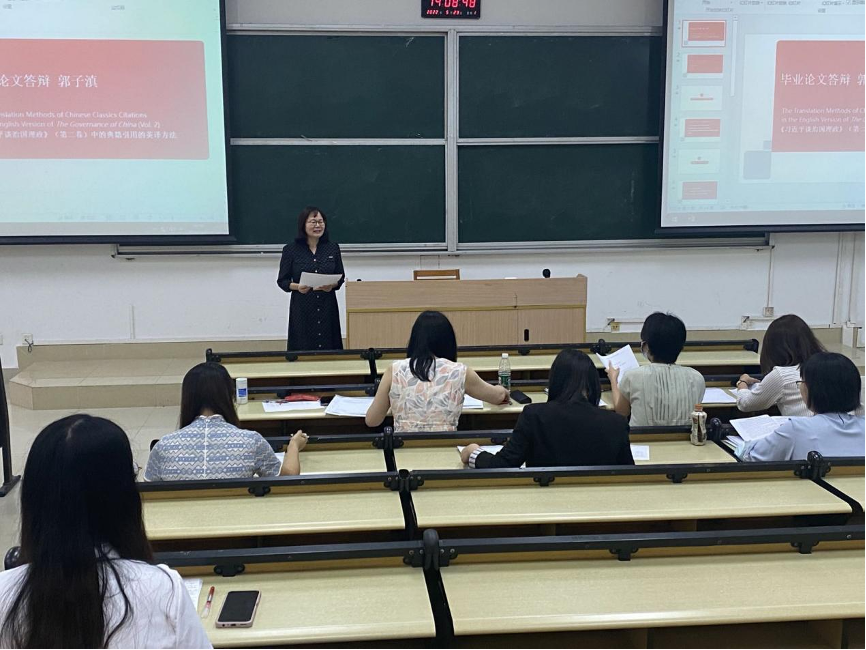 2022届本科毕业论文集中答辩会在大学城校区文新楼106室举行。参加集中答辩报告会的专家老师包括副院长苏远连教授、张艳副教授、李莹莹博士、欧丽贤博士、邹琰博士副教授、卢秋燕博士、学校教务处李濛晓妍老师、学院教务办罗怡老师。来自英语、英语(师范)、日语、法语专业的6位同学由学校教务处随机抽取,参加了本次集中答辩。