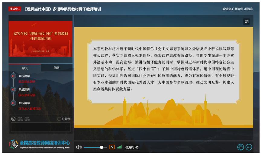 2022年8月5日—6日,教育部高等教育司主办了由中央宣传部和教育部联合组织编写的《理解当代中国》多语种系列教材培训。王晋军院长、苏远连副院长、汪东萍副院长以及英语、日语和法语专业的系主任、党支部书记和相关任课教师参加了培训。