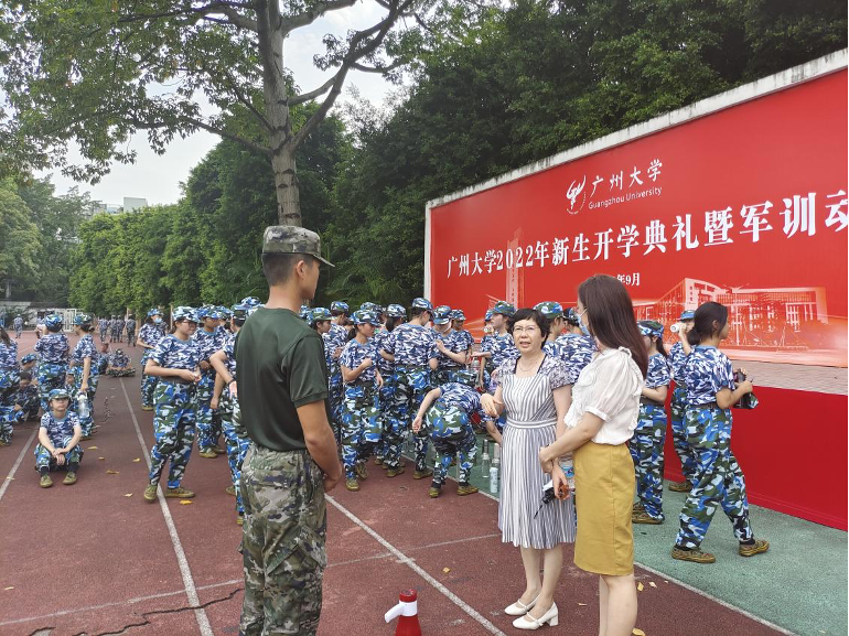 图六:学院院长王晋军、党委副书记许多恬开展新生军训教育
