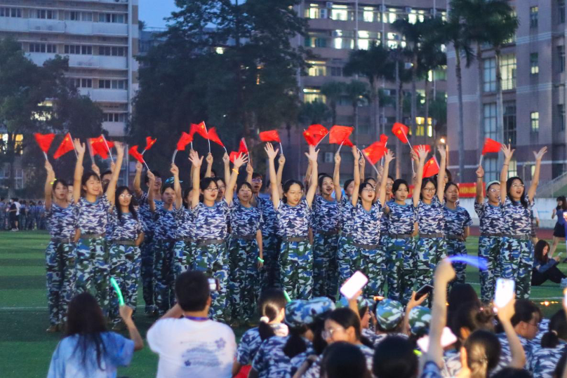 刚退伍复学的大三学生李婉儿同学到现场给新生们分享了军旅生涯的点滴,通过亲身经历勉励所有同学们克服困难和磨练坚强意志,鼓励同学们积极应征入伍、投身军营。